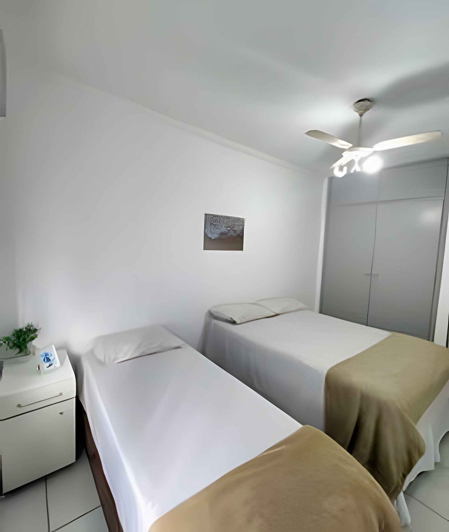 Opartamento possui ar condicionado no quarto e outro ar condicionado na sala, ventiladores de teto no quarto e na sala, Wi-Fi , televisão na sala com Chromecast, cafeteira, sanduicheira, microondas, geladeira, fogão, elevador, liquidificador, secador de cabelos, ferro de passar roupas